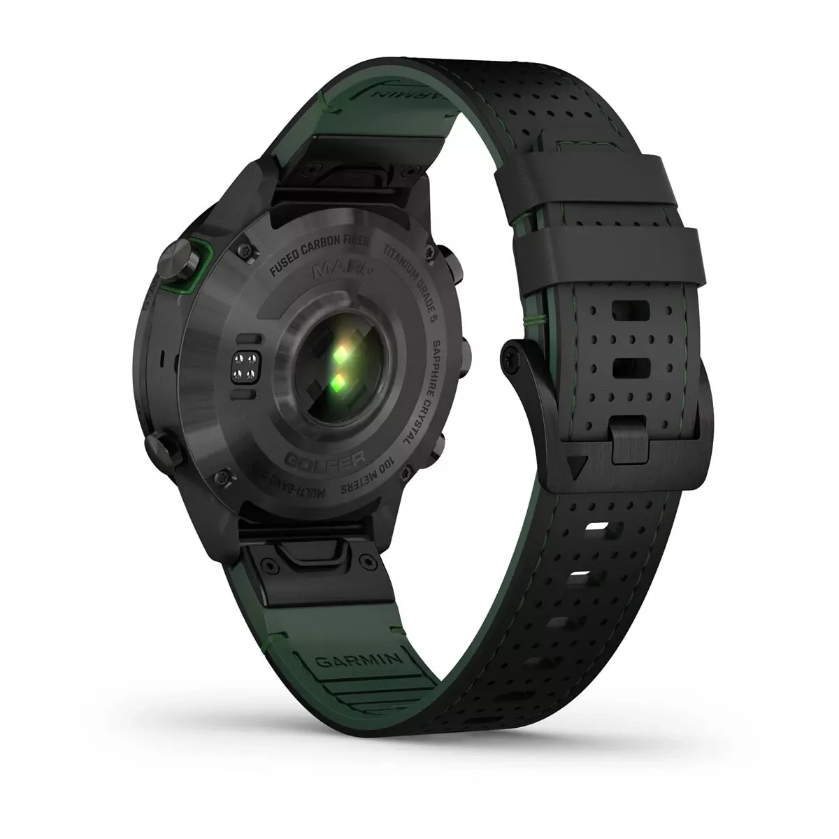 Let others know you live for the game. This luxury modern tool watch features a perforated FKM leather hybrid strap, stunning AMOLED touchscreen display with traditional button controls and a 46 mm case made from Fused Carbon Fiber material for the ultimate performance.