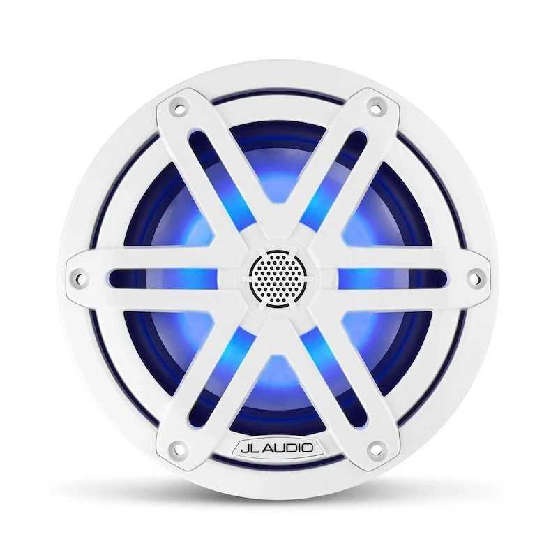 M3 Standard Flange 6-1/2 Inch Marine Coaxial System Gloss White Sport Grille with RGB illumination. Purpose-engineered and built for real marine duty, M3 coaxial systems deliver excellent performance at a more affordable price. This 6-1/2 Inch coaxial speaker is designed around the standard marine 6-1/2 Inch speaker format and features a wide mounting flange with a six hole mounting pattern. The long excursion woofer design and excellent power handling make your music come through loud and clear at speed, or at anchor. The Woofer Element Is Optimized To Operate With A Large Volume Of Air Behind It. Operating this coaxial system in less space will compromise its low frequency performance. A 3/4 Inch pure silk dome tweeter, specially treated to withstand the marine environment, handles the high-frequency duties. Silk has been chosen for its lightness, excellent damping properties and smooth response characteristics. Integrated into the Sport Grille’s frame, the internal LED lighting assembly was meticulously designed to uniformly illuminate the woofer’s cone area with a lively glow, adding a dramatic visual experience to your high seas journey. Add an optional RGB controller to create thousands of color variations. Professional installation is strongly recommended. Although Coaxial Systems can be used with as little as 20 Watt per channel, for best audio performance we recommend amplifiers capable of between 75 to 100 Watt of continuous power per channel.