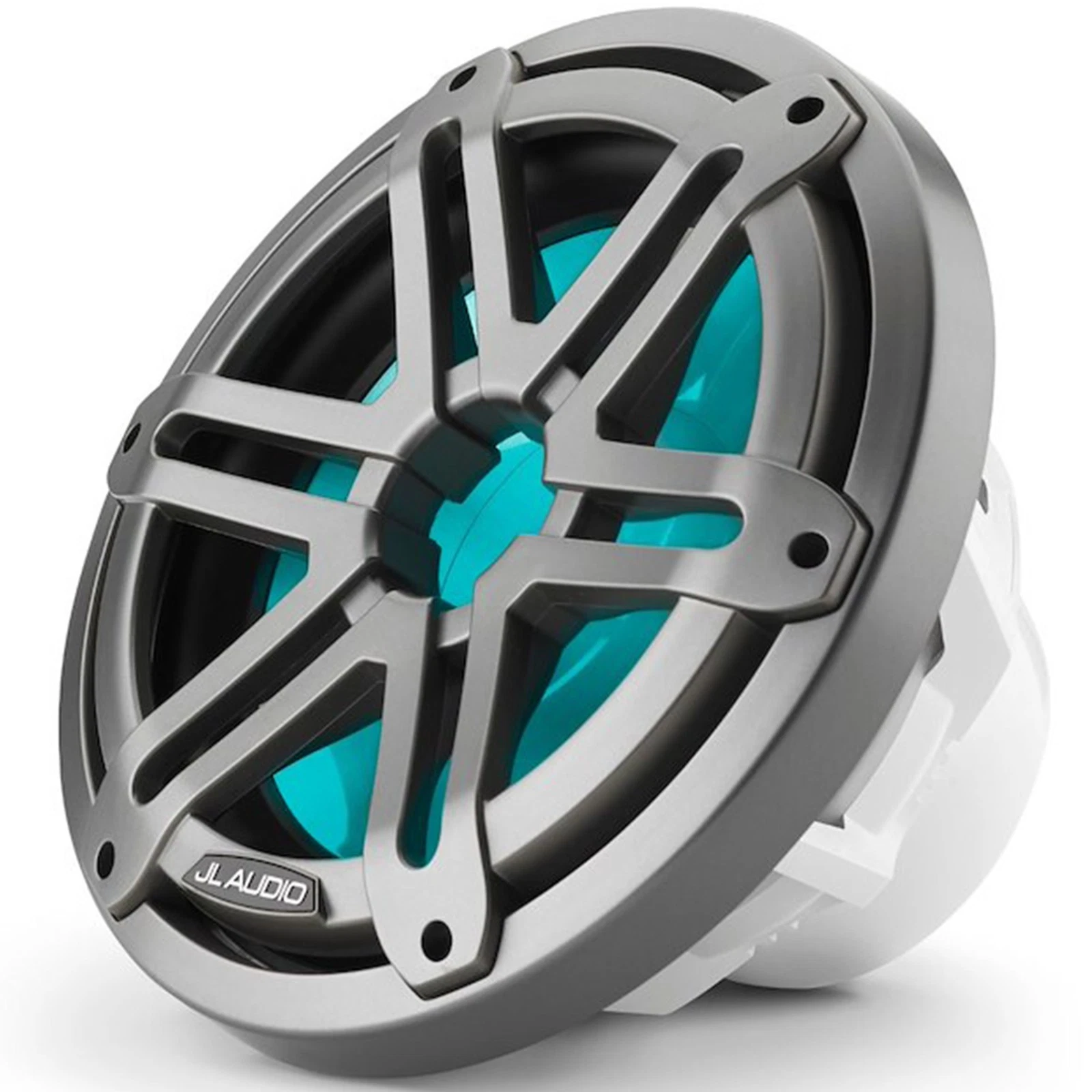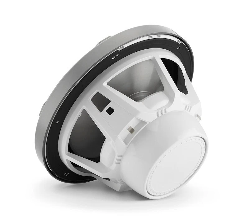 M3 10 Inch Marine Subwoofer for Infinite-Baffle Use; Gray Metallic Sport Grille with RGB LED Illumination with appropriate system setup, the addition of a subwoofer allows your smaller main speakers to be free of the burden of reproducing low frequencies. This allows your whole system to play louder and to sound cleaner at all listening levels. Purpose-engineered and built for real marine duty, the M3 infinite-baffle subwoofers are designed to operate without a dedicated enclosure and are targeted towards moderate power applications. Integrated into the Sport Grille’s frame, the internal LED lighting assembly was meticulously designed to uniformly illuminate the woofer’s cone area with a lively glow, adding a dramatic visual experience to your high seas journey. Add an optional RGB controller to create thousands of color variations. Professional installation is strongly recommended. This is best used with amplifier power in the 50 to 175 Watt range and is optimized to operate with a large volume of air behind it. If you need a Subwoofer that operates in a small sealed enclosure. Like all JL Audio marine speakers, this driver is built to withstand a real saltwater marine environment and deliver years of listening enjoyment. Production of this model takes place in JL Audio’s Miramar, Florida factory, using global materials and components.